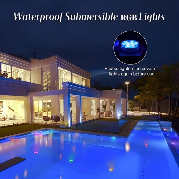 Fără prize, fără scântei! Îmbunătățiți cu ușurință ambianța oricărui acvariu pentru pești, recipient de apă sau găleată de gheață. Aceste mini lumini acvatice cu culori vibrante înfrumusețează elegant piscina, acvariul, vaza sau orice decor. Fie că sunteți gazda unei petreceri sau vă bucurați de o seară liniștită, aceste lumini RGB versatile vă vor îmbunătății instantaneu mediul înconjurător.