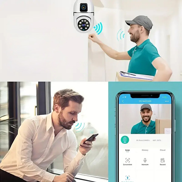 Cu microfonul încorporat a lui BULBCAM, puteți comunica direct cu persoanele aflate la ușa dvs., folosind telefonul. Transmiteți instrucțiuni curierilor sau ghidați oaspeții, indiferent dacă sunteți acasă sau departe, astfel încât să gestionați vizitatorii cu ușurință de oriunde vă aflați.