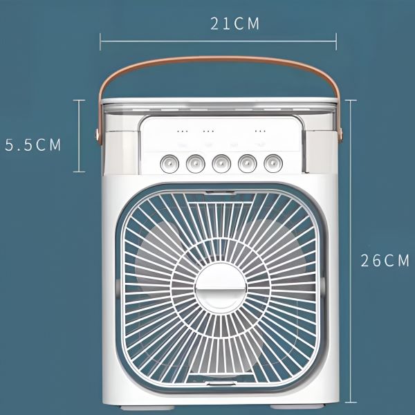 Cu un rezervor de apă de 600 ml, acest aparat portabil de aer condiționat asigură o răcire și umidificare prelungită, perfectă pentru ore de utilizare fără reumpleri frecvente.