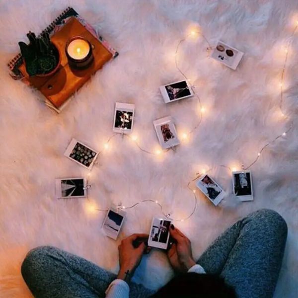 Șirurile de lumini cu agrafe pentru prinderea fotografiilor pot fi așezate într-un borcan sau folosite pentru agățarea fotografiilor în dormitor, la petreceri de nuntă, sărbători de Crăciun sau petreceri aniversare.
