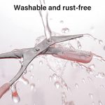 Un pieptene de protecție acoperă vârfurile foarfecii pentru a preveni accidentele în timpul tunderii.