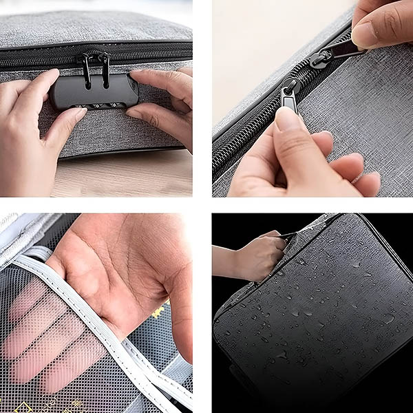 Îngrijorat de siguranța documentelor și obiectelor dvs. de valoare? Această geantă impermeabilă este echipată cu o încuietoare cu cod securizat, asigurându-vă că documentele, banii și bijuteriile dvs. rămân inaccesibile pentru alții.