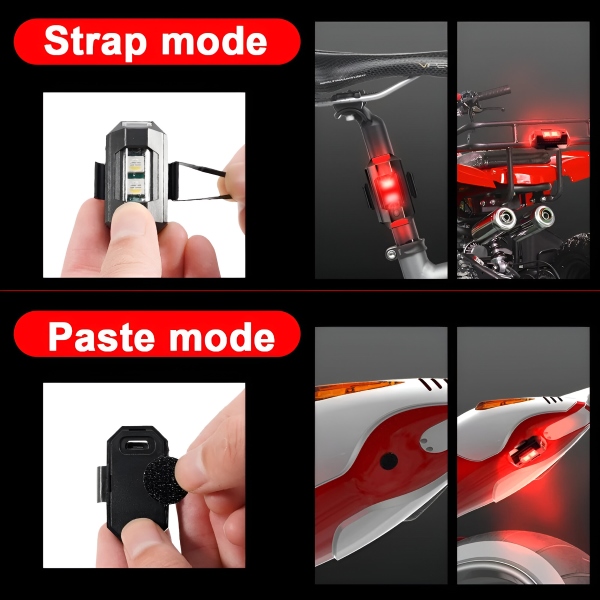 Aceste lămpi sunt incredibil de versatile și proiectate pentru a se potrivi mașinilor, motocicletelor, bicicletelor și dronelor. Alegeți între metodele de instalare Velcro și inel de cauciuc pentru o instalare sigură și simplă. Nu este nevoie de unelte complicate sau ajutor profesional.