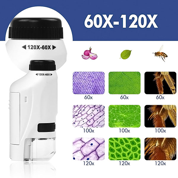 Echipat cu iluminare LED și mărire de 60x-120x, copiii pot descoperi fascinanta lume microscopică ziua sau noaptea. Imaginile clare și precise îi mențin implicați și dornici să afle mai multe.