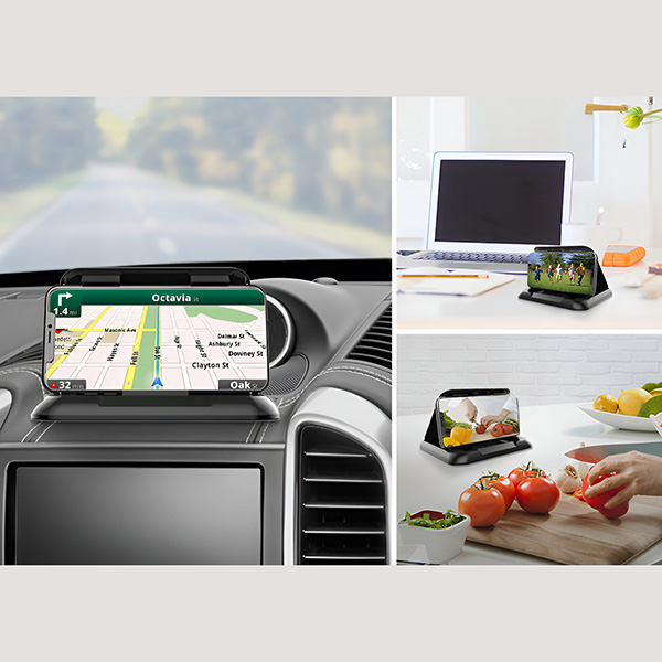 Obțineți cel mai bun unghi de vizualizare cu acest suport cu înclinare de 120°, asigurându-vă că puteți vedea clar ecranul telefonului pentru a conduce în siguranță. Când nu este utilizat, se pliază plat și se potrivește ușor în cotieră, torpedou sau buzunarul ușii.